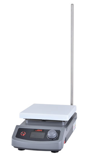 JSHS-18D Digital hotplate Stirrer utilize the most advanced Digital Fuzzy Control technology of temperature, stirring speed and time. Control temperature range max. 400 °C in 0.1 °C display resolution, stirring speed range from 80 to 1,500 rpm, timer set to 99 hr 59 min. Durable and rugged aluminum casting body and chemical resistant ceramic coated top plate.