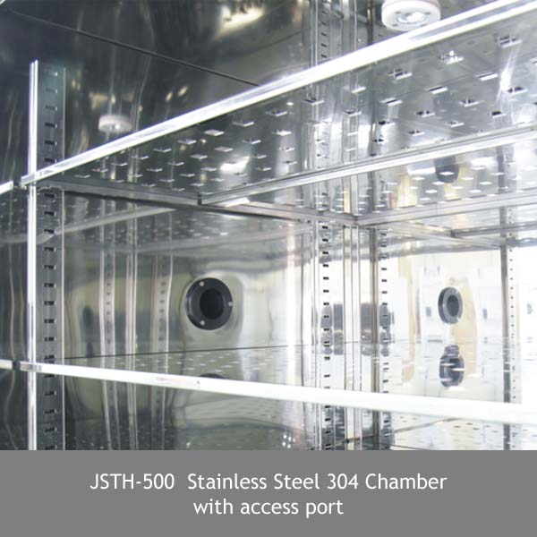 JSTH-xxxCP Series Climatic Chamber is practical and economic choice for stability, reliability and acceleration aging test of various parts, components and final products in ambient range of temperature from +10°C to +80°C and humidity from 60 ~ 90% RH.